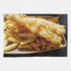 Photo de fond de Fish and Chips imprimée sur une serviette de thé.