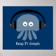 Poster bleu foncé avec bordure noire avec une jolie méduse bleue / poulpe portant le casque et les mots "Keep it Simple" Si vous voulez changer la couleur arrière - plan cliquez simplement sur le bouton "Customiser". Le texte est également personnalisable - beaucoup de polices et de couleurs à choisir. Vous pouvez modifier la taille et la couleur de la bordure ou la supprimer complètement. Visitez mon magasin Sober Princess pour des cadeaux uniques et amusants pour les personnes en rétablissement de l'alcoolisme et de la toxicomanie - et des cadeaux avec des messages spirituels/inspirants. Toutes les illustrations créées par un alcoolique en récupération.