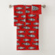 Serviette dans un motif de poisson moderne, lunatique, rétro, dans les tons gris argenté clair / gris gris foncé à gris graphite profond sur un rouge à lèvres profond arrière - plan