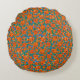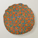 Un Coussin Rond amusant ou Cushion, avec un motif de Poissons Orange Ditzy sur un arrière - plan Vert et Bleu. Partie de la collection Posh and Painterly "Fish in the Sea" et peut être ajusté pour s'adapter à n'importe quel Cushion ou Coussin.