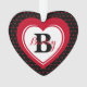 Le design d'art populaire avec de jolis coeurs rouges parsemés sur un arrière - plan noir, présente un grand design de coeur rouge et blanc double couleur au centre, mettant en valeur le monogramme et le nom de votre ou de votre bien-aimé. Idéal aussi pour un animal de compagnie. Sur le dos se trouve un petit coeur "tatouage", avec les mots "Noël 20xx". Personnalisez avec votre monogramme, nom et année. Les couleurs Arrière - plans et textuelles sont personnalisables, pour compléter votre décor.