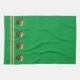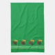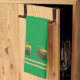 Cette serviette de cuisine vert vif est décorée de poivrons frais de jardin et de rayures jaune orangé. Idéal pour une cuisine végétarienne.