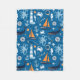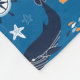 Coloré, amusant, thème nautique couverture polaire avec un arrière - plan bleu profond océanique et diverses choses nautiques et océaniques tels que poulpe, baleines, roues de navire, ancres, voiliers, crabes, drapeaux de bannière, hippocampes, coquillages, phares et étoiles!