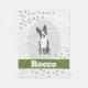 Parfait couverture en toison pour célébrer votre compagnon de fureur. Cette couverture présente une illustration aquarelle de votre chien ainsi qu'une zone customisée pour le nom de votre animal de compagnie. Il est possible de personnaliser davantage la police en modifiant la couleur de l'arrière - plan, les formes et aussi la couleur de la police.