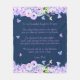 Couverture florale fille avec texte élégant qui peut être édité et personnalisé avec vos propres noms. Il présente des fleurs en violet, violet et rose, des papillons, et une citation sincère et significative d'un père disant "À ma belle fille, peu importe si proche ou éloigné, vous êtes toujours présent dans mon coeur. Je suis béni d'être ton père et je serai toujours là pour t'aimer et te guider quand tu as besoin de moi. Enveloppez-vous dans cette couverture quand vous avez besoin d'un câlin. Amour, papa".
