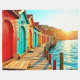 Entrez dans un rêve côtier animé où une promenade éblouissante vous guide vers la mer scintillante. Ce chef-d'oeuvre artisanal à l'IA, méticuleusement rehaussé par un artiste compétent, capture la beauté époustouflante d'un port baisé au soleil. Chaque boathouse peinte de couleurs vives est un phare de joie, reflétant la lumière chaleureuse et accueillante du soleil couchant. Perdez-vous dans cette scène pittoresque, où eaux tranquilles et couleurs brillantes convergent pour créer un moment de bonheur serein et d'émerveillement créatif.