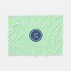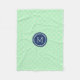 Couverture faite sur commande de monogramme en vert léger de menthe de pastel, motif marocain de bleu marine et blanc foncé de quatrefoil de trellis.