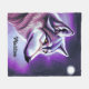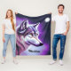Il s'agit d'une belle couverture en toison pour un amoureux du loup avec une illustration d'un visage de loup mystique en profil avec des tons blanc et violet et bleu. Le nom sur la couverture est personnalisable avec le nom du destinataire.