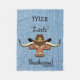 Personnalisez la chaise Longhorn Steer Fleece Blank de ce Petit Cowboy "One of a Kind" ! Il présente un comique Longhorn Steer portant un Casquette Western Cowboy avec une Sheriff's Star sur un Arrière - plan Blue Denim...Entouré par les mots...."Petit Buckaroo" ! Cette couverture en polaire "Little Buckaroo" a un Coussin et une lampe correspondants ! Design D'Art Original Par L'Artiste Kerry Miller !