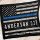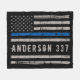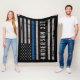 Blanche à ligne Bleue Mince - Etats-Unis Drapeau américain design en couleurs Police Drapeau, design en détresse. Parfait pour tous les policiers, maman de la police et femme de la police. Personnalisez avec le nom de l'agent de police, ou le numéro d'insigne, ou le nom de famille. Cette mince couverture de ligne bleue avec numéro d'insigne est parfaite pour un cadeau de retraite d'application de la loi, ou un cadeau de diplôme de la police. . DROIT D'AUTEUR © 2020 Judy Burrows, Black Dog Art - Tous droits réservés. Couverture de la flotte de police personnalisée à trait mince