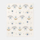 Le mauvais oeil, symbole de protection et d'énergie positive, est astucieusement mélangé à des éléments célestes, faisant de cette couverture non seulement un accessoire confortable, mais un talisman puissant qui écarte la négativité et la tranquillité invitation dans votre espace sacré. Cette couverture magnifiquement conçue présente un éventail de motifs maléfiques captivants, ornés de lunes scintillantes, d'étoiles scintillantes et de cristaux scintillants, le tout tissé de manière complexe pour créer une tapisserie d'allure mystique. La palette de couleurs est de bleus profonds et de bleus brillants, d'or radiant et de blancs éthérés. C'est la taille de lancer parfaite.