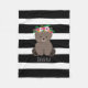 Une couverture d'ouatine comportant une toile de jute a inspiré l'illustration d'un ours utilisant une couronne de fleur. L'arrière - plan est les rayures noires et blanches. Personnalisez le nom.