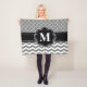 Montrez votre style d'une manière d'amusement avec cette couverture noire et grise de monogramme d'impression de chevron et de quatrefoil.