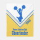 Couverture orientée d'ouatine de pom-pom girl faite en jaune d'or et blanche, avec des graphiques d'une silhouette bleue de pom-pom girl et des détails bleus. Personnalisez tout le texte pour adapter à vos besoins. Grande manière de rester chaud pendant le jeu.