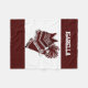 Restez chaud sur les lignes latérales avec cette couverture orientée d'ouatine de pom-pom girl faite dans marron et blanc, avec des graphiques de la robe d'une majorette, du mégaphone, et des poms de pom, au milieu. Personnalisez le nom blanc pour votre pom-pom girl préféré.