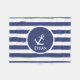 Cette couverture bleue et blanche a les rayures horizontales. Au centre, il y a l'ancre et un endroit d'un bateau blanc pour écrire le nom du destinataire. Une couverture personnalisée est une addition gentille à la pièce d'un enfant.
