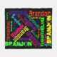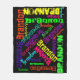 Jetée de couverture en laiton noir avec des néons de couleur électrique popping. Nom Collage dans Lime Green, Aqua Blue, Yellow, Grey, Purple et Vivid Blue. Faites que quelqu'un se sente très spécial avec un coussin personnalisé avec tous les noms que vous choisissez. Cliquez sur customiser, modifiez pour modifier la couleur de l'arrière - plan. Modèle de nom simple ou ajouter des photos pour vous customiser. Custom Birthday, Félicitations ou Any Day, Cheery, Happy, fun et festif.