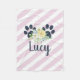 Un amusement, couverture lunatique d'ouatine qui peut être personnalisée juste pour votre ami velu. Cette couverture comporte deux empreintes de pattes de bleu marine et un bouquet d'amusement des fleurs placées sur un arrière - plan rayé rose adorable.