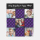 Couverture de Noël Cozy - Enveloppez vos proches de chaleur et de souvenirs chéris avec notre couverture de Noël Cozy. Ce cadeau de vacances parfait combine le charme rustique d'un motif à carreaux de buffle violet avec la valeur sentimentale d'un collage de photos personnalisé. Conçue dans un style de courtepointe moderne en patchwork, cette couverture s'intègre parfaitement dans n'importe quel décor de maison de ferme ou rustique.