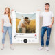 Cette Couverture blanche Couple Personnalisée présente un design d'album de musique avec nom et photo personnalisés.