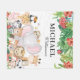 Beaux animaux de la jungle avec des feuilles tropicaux et des bordures de fleurs et de nom et de nom personnalisés.