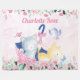 Belles fleurs roses rousses avec chatons mignons, oiseau et papillon avec le nom très personnalisé enfant.