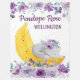 adorable joli éléphant dormant sur une banane mûre avec de belles fleurs violettes, nom personnalisé et nom de famille personnalisé.