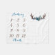 Présentez notre couverture personnalisée pour bébé garçon d'étape avec de charmants bois de cerfs et des fleurs bleues. Cette couverture mensuelle personnalisée est parfaite pour suivre la croissance et l'âge de votre nouveau-né. Idéale comme cadeau de baby shower, cette agrafe est conçue avec soin par Victoria d'Invitations VG. Capturez chaque moment précieux avec ce traceur de croissance, spécialement conçu pour votre petit garçon. Découvrez plus de belles couvertures jalons et d'autres modèles à l'adresse www.zazzle.com/vginvites.