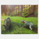 Le chien léopard de Catahoula espionne le porc sauvage dans la forêt et commence à aboyer bruyamment au porc sauvage à distance de sécurité. Restez au chaud avec cette couverture en toison !