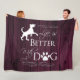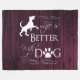 Restez à l'aise lors des soirées fraîches d'automne avec une Life is better with a Dog Fleece Blanket. La conception de couverture comprend un texte qui dit "La vie est meilleure avec un chien." avec un empreinte de patte et silhouette de chien orné contre un profond magenta arrière - plan rustique en bois. Autres cadeaux disponibles avec ce design aussi.