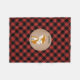 Une couverture d'ouatine comportant une illustration d'un renard. L'arrière - plan est plaid noir et rouge de buffle. Personnalisez le nom.