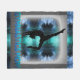 "'GYMNASTICS MOM" FLEECE BLANKET DANS LES TONS DE BLEU, GRIS & TURQUOISE.