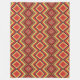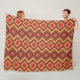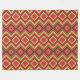 Motif de couverture amérindienne en rouge, orange, noir, jaune et une touche de vert.