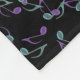 Turquoise et couverture pourpre d'ouatine de notes de musique. Une combinaison colorée de vert bleu et de cris pourpres de notes musicales croisant sur un arrière - plan noir sur une couverture molle et confortable de jet d'ouatine. Une addition lumineuse à toute pièce, à amusement de prendre pour maintenir chaud à un concert et à un grand cadeau pour votre musicien ou mélomane préféré.