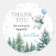 Our Polar Bear Classic Round Birthday Stickers are the perfect themed labels for a winter or Arctic themed birthday party. Each sticker features a cute polar bear holding a balloon in a pine forest covered in snowflakes. The colour palette includes cool tones such as icy blue, white and silver to match the cold theme. Ideal for attaching to party favors, gift bags or treats, adding a unique and personal touch to winter celebrations.