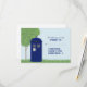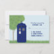 Carte de réponse Mariage de boîte de police rapide et amusante avec une boîte de police vintage bleue brillante dans un joli champ avec un arbre dans l'arrière - plan. Facile à customiser, il suffit d'ajouter les détails de votre mariage dans les champs de texte fournis. Cliquez sur "Customiser" pour trouver d'autres options de personnalisation.