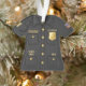 Honor the hero in your life with this black and gold police officer shirt Christmas ornament. A heartfelt tribute to those who serve and protect. Designed to resemble a classic police uniform, it brings pride and gratitude to your holiday tree. Perfect for celebrating a deputy, sergeant, or any friend or family member in law enforcement. Personalize this ornament to create a meaningful keepsake for Christmas, police academy graduations, or retirement celebrations.