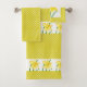 Accélérez le décor de votre salle de bain pour la saison printanière avec un ensemble de serviettes de bain jaune et blanc. Cette serviette est munie de jonquilles jaunes et de pois jaunes et blancs.