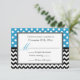 Cartes de réponse mariages élégantes avec un motif pois blanc sur bleu sur le dessus et un motif zigzag chevron noir & blanc sur le fond.