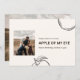 Célébrez un anniversaire spécial avec la touche personnelle de la carte de vœux personnalisée Apple Of My Eye. Dotée d'un design minimaliste et élégant, cette carte vous permet de télécharger une photo chérie sur le devant, ce qui en fait un objet précieux sentimental. Le doux message "Joyeux Applelicious Day ! Apple of My Eye - Joyeux anniversaire" ajoute une touche de chaleur et d'amour. Parfaite pour exprimer votre affection à quelqu'un de cher, cette carte de haute qualité est idéale pour les anniversaires et les occasions spéciales.