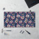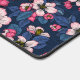 Fleurs de pommes et abeilles dessinées à la main sur un arrière - plan bleu foncé
