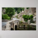 Affiche du pont sur la rivière Bybrook dans le petit village pittoresque de Castle Combe avec des maisons construites en pierre couleur miel dans les Cotswolds, Angleterre, Royaume-Uni.