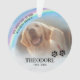 Ornement de Noël en souvenir de l'animal de compagnie avec un pont arc-en-ciel coloré dans le ciel céleste, une photo décolorée de l'animal que vous vous souvenez, la citation de sympathie "Je te retrouverai au pont arc-en-ciel", le nom du chien/chat, empreintes de pattes et dates. Cette décoration de sapin de Noël pour animaux est facile à personnaliser et constitue le cadeau idéal pour vous, votre famille ou vos amis pour honorer ces animaux spéciaux qui ne sont plus avec nous.