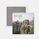 Aimant photo souvenir du pont Bastei (Basteibrücke) en pierre sur la rivière Elbe, reliant les formations rocheuses emblématiques des montagnes de grès Elbe près de Dresde dans le parc national Saxon Suisse (Sächsische Schweiz) en Allemagne de l'Est avec le texte : 'Pont Bastei, Allemagne'.
