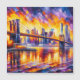 Le pont Brooklyn, une merveille architecturale achevée en 1883, symbolise l'innovation industrielle et l'élégance urbaine. Ses arches et câbles en acier relient Brooklyn à Manhattan, incarnant le glamour intemporel et la signification historique.En utilisant le style acrylique avec des tons dorés et lavande sur cette merveille emblématique.