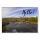 Cette carte de notes Hello présente une photo d'un pont couvert vintage au Watson Mill State Park, au Texas. À l'intérieur de la carte se trouvent des coins décoratifs à défilement. Vous pouvez télécharger une photo à l'intérieur sans frais supplémentaires. Cliquez simplement sur "Personnaliser".