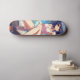 Stylish skateboard deck featuring a vibrant anime-inspecred design: a blue-haired girl in a casual summer outfit, relaxing under palm trees with a bright blue sky in the background. Parfait pour les fans de l'animation, l'amour a tropical, le beachy vibe. impression de haute qualité avec vivivid colors, making it a unique eye-catcher for any skate session