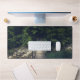 Photo de paysage de la rivière Idrijca près d'Idrija, Slovénie avec un simple pont suspendu suspendu suspendu suspendu au-dessus.