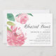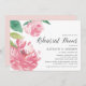 Élégante répétition florale invitation dîner avec des feuilles verts luxuriants et des fleurs de pivoines aquarelles en rose vif. Personnalisez avec vos détails de la répétition et de la répétition de cérémonie alignés à droite.