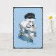 Carte de voeux de caniche blanche conçue à partir de ma peinture originale. C'est Fifi qui attend son partenaire. Elle a sur un casquette motard et est sur sa moto. Je l'appelle ma "poussette motard". Cette conception artistique est également accompagnée d'un caniche noir.